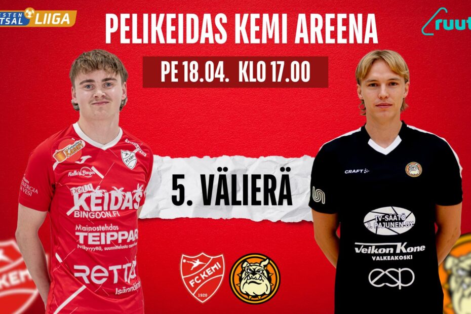 FC Kemi kohtaa pitkäperjantaina 18.4 klo 17 Futsal-liigan ratkaisevassa viidennessä välieräottelussa Mad Maxin Valkeakoskelta. Liput myynnissä nyt Nettilipussa ja Pelikeidas-Bingolla!